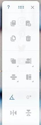 Menu ini memungkinkan Kamu untuk menyalin dan menempatkan, mengatur dan meluruskan elemen yang berbeda, mengatur posisi tertentu, sudut, dan sebagainya. Opsi yang Kamu miliki akan bergantung pada apa sebenarnya yang Kamu edit di situs itu sendiri.