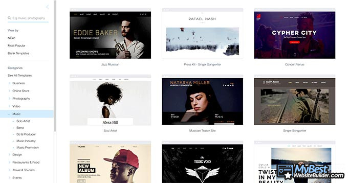 Wix menawarkan kepada Kamu pilihan template tema yang sangat besar untuk disortir dan dipilih. Tentu, jika Kamu mencoba memulai sebuah blog, Kamu tidak perlu harus memilih dari salah satu tema blog - itu hanya cara yang disarankan untuk melakukannya.